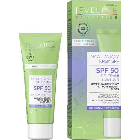 Eveline SPF 50 es un protector solar hidratante para el cuidado diario de la piel del rostro. Su fórmula proporciona una alta protección solar al tiempo que favorece el confort y la hidratación de la piel durante la exposición diaria al sol.